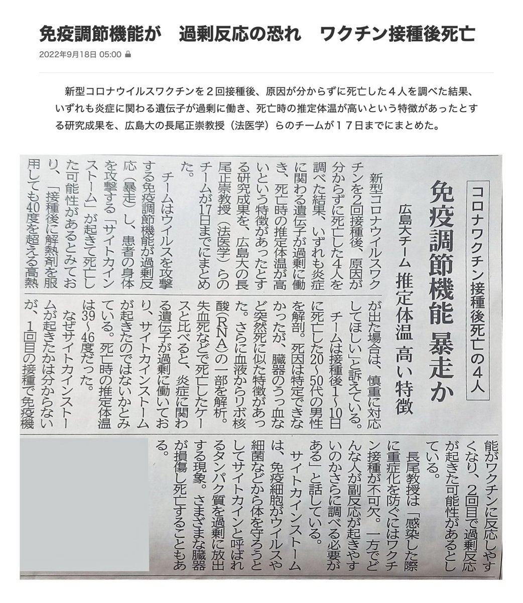 23歳死亡。接種後半日で