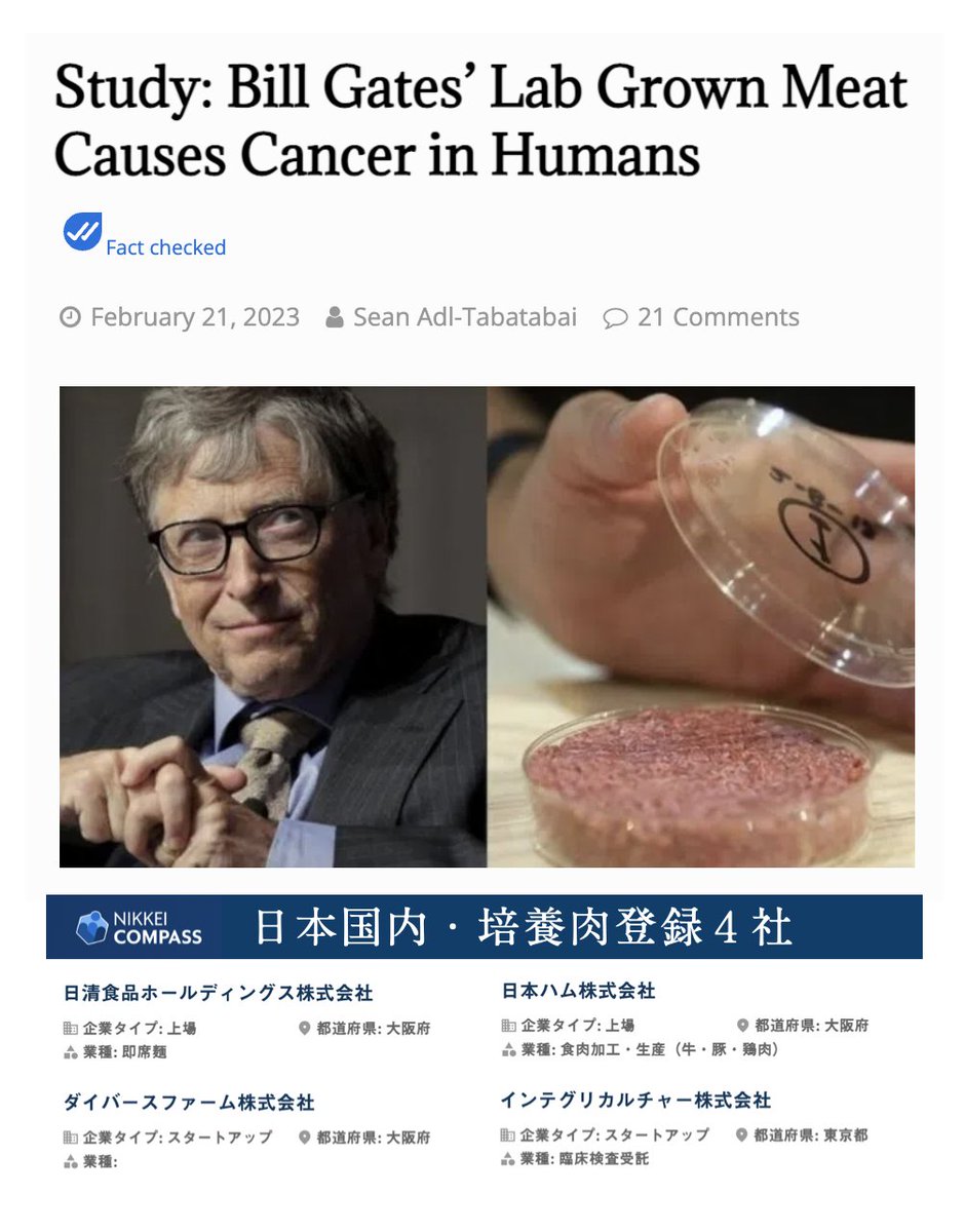 培養肉は、癌のかたまり。日本国内4社が開発中。