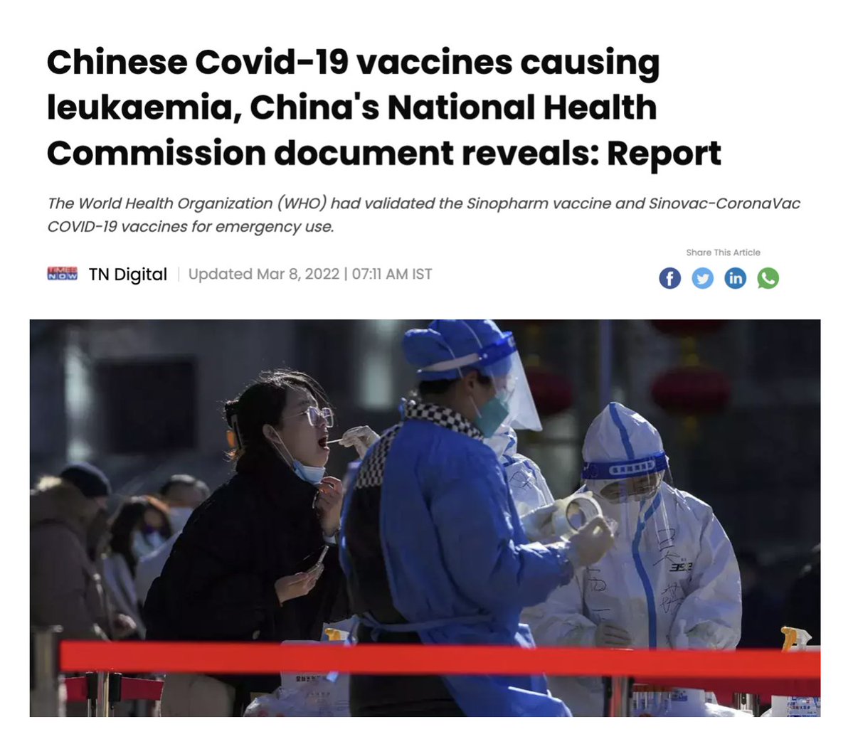 その事実は、中国国家衛生委員会(NHC)の文書で明らかになった。WeChatなどでも「ワクチン接種後に、白血病になった」という投稿が増加している。政府は素早く察知し、SNS規制に乗り出した。