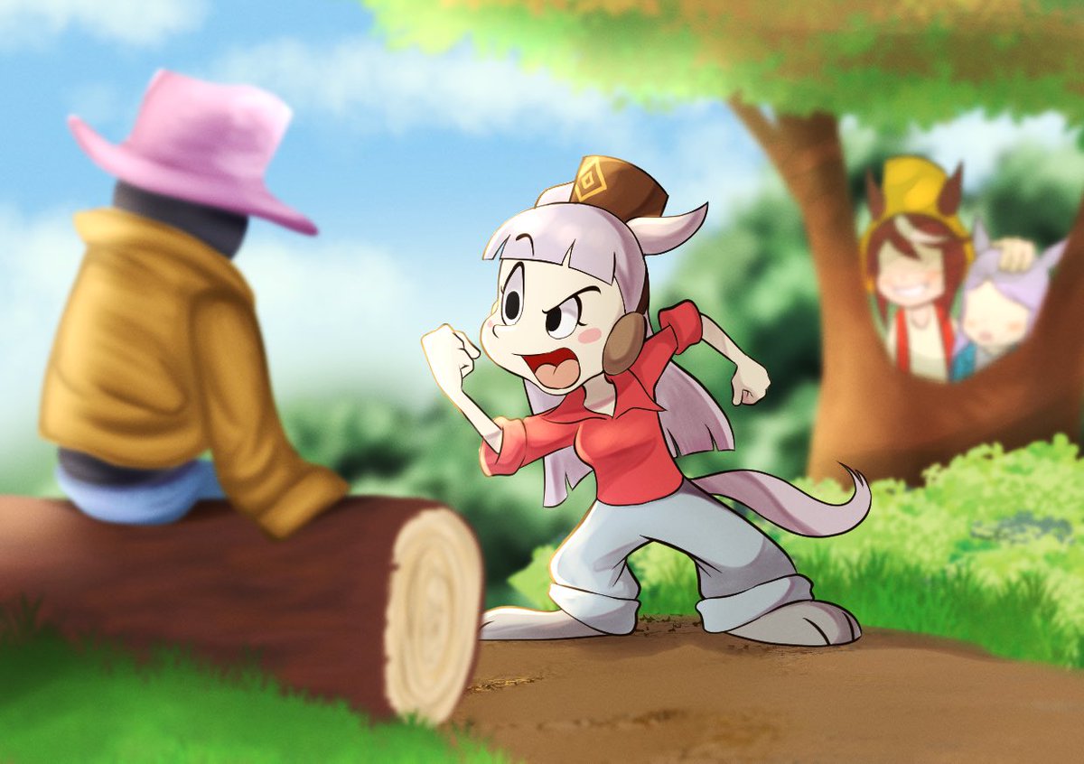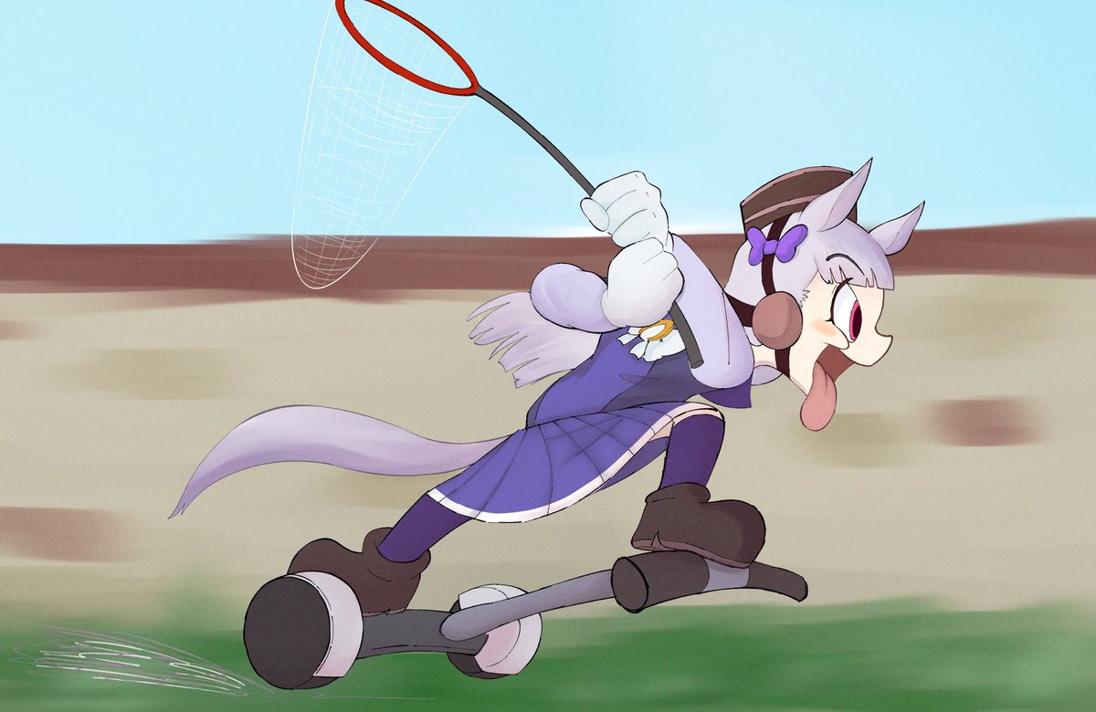 ゴルシちゃん号に乗って何かを追いかけるカートゥーンゴルシ