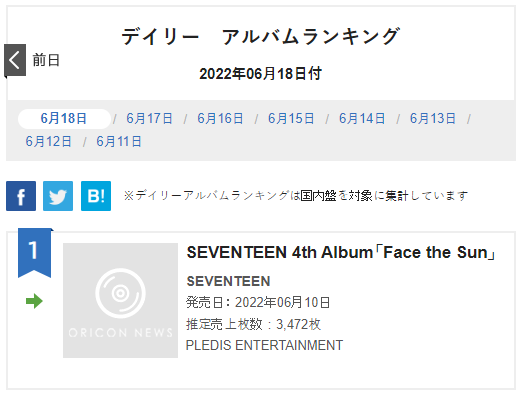Oricon Daily Albums Ranking | 2022年06月18日付