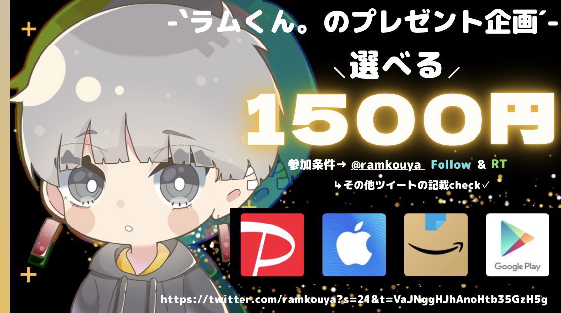 僕のフォロー・♡・♻・全てした人の中から2名に500Payプレゼント🎁