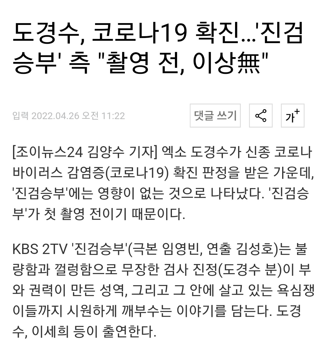 도경수......'진검승부'측 "촬영 전,이상無"