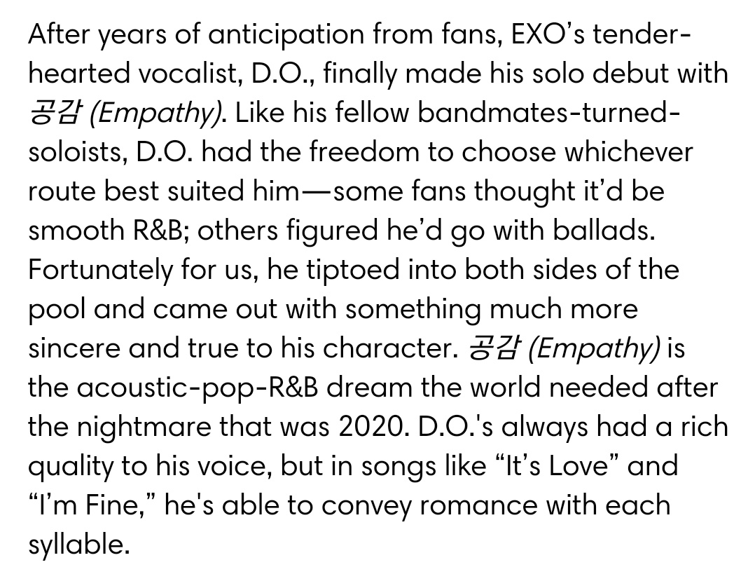 팬들의 오랜 기다림 끝에 EXO의 다정다감한 보컬 디오(D.O.)가 드디어 솔로 데뷔앨범 공감을 발표