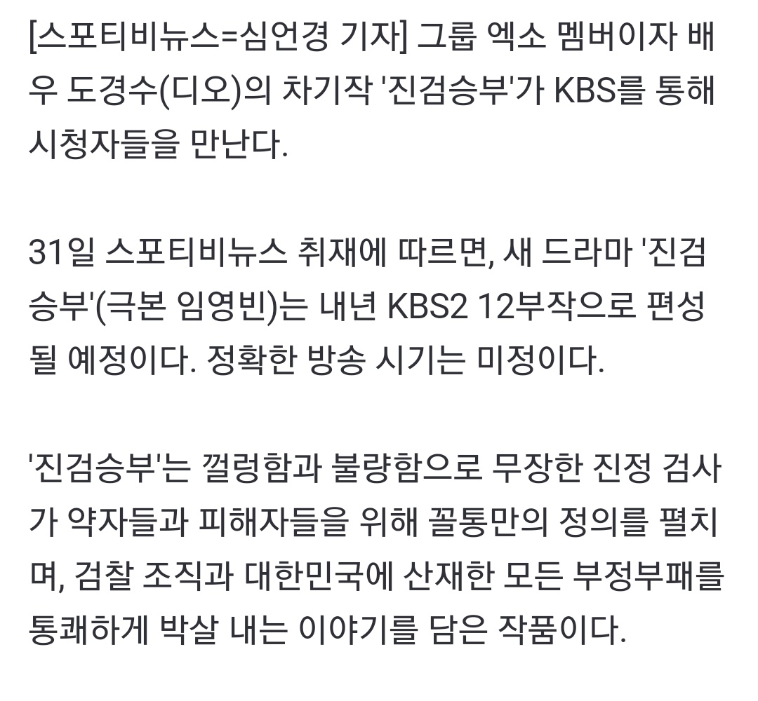[단독]도경수 '진검승부', 내년 KBS서 본다