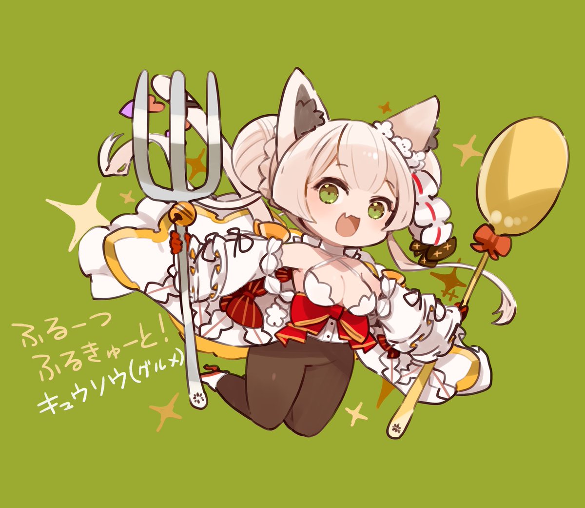 「ふるーつふるきゅーと!」のプラチナガチャに本日から登場する「キュウソウ(グルメ)」のイラストを担当いたしました。ドレスを着せてもらったけどタイツは外せなかったキュウソウ、おしとやかに過ごせるのでしょうか。 よろしくお願いいたします~💪