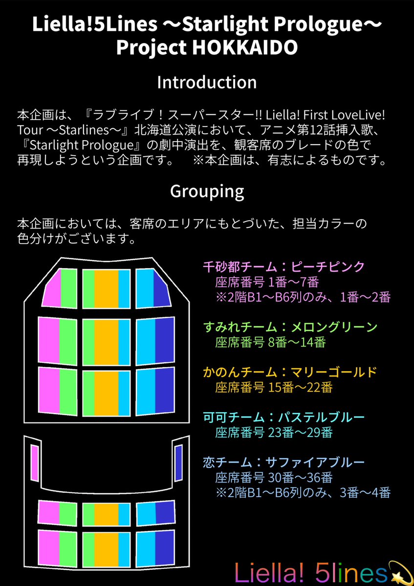 #Liella5lines 北海道公演の座席表と参加方法の一覧です。