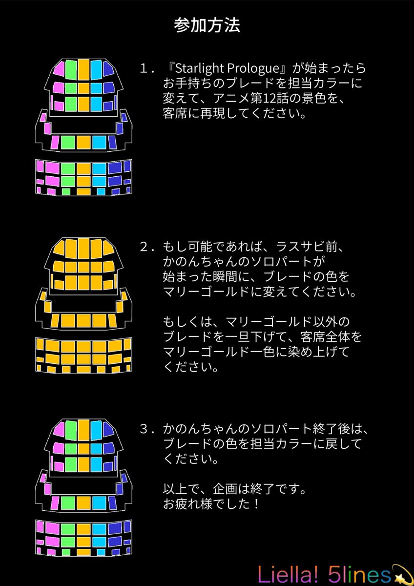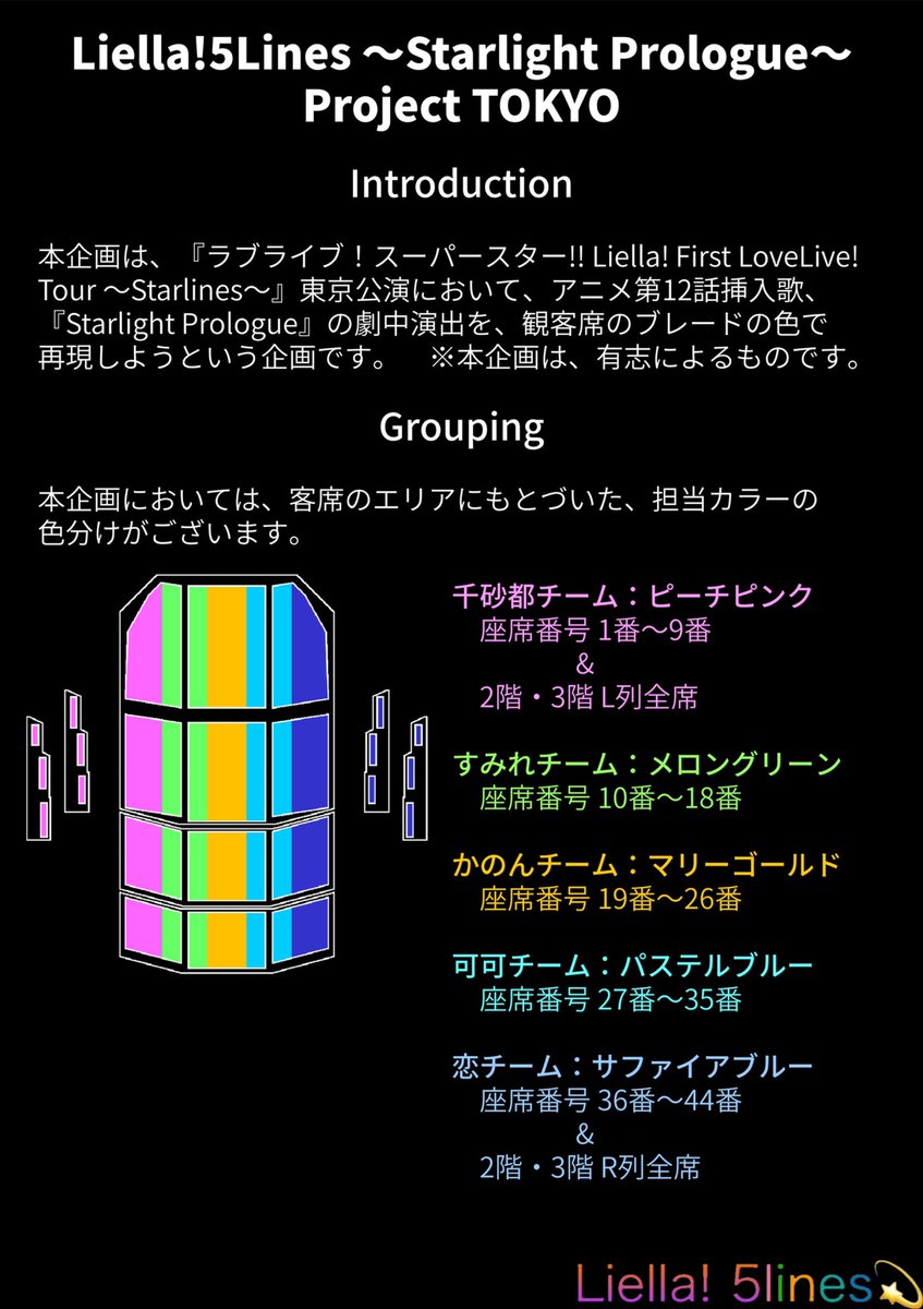 #Liella5lines 東京公演の座席表と参加方法の一覧です。