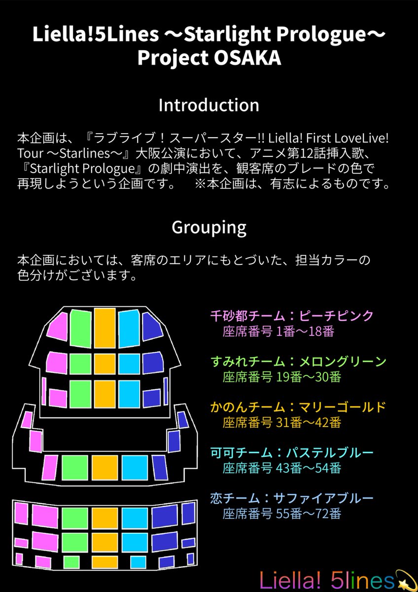 #Liella5lines 大阪公演の座席表と参加方法の一覧です。