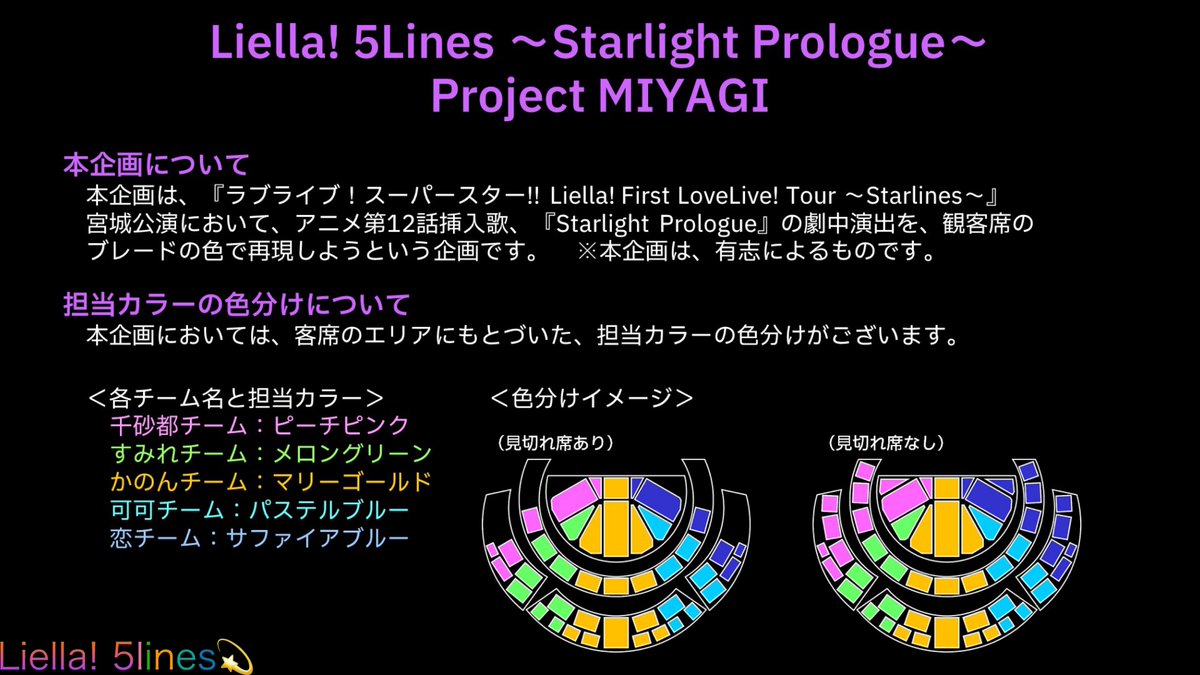 #Liella5lines 宮城公演の座席表と参加方法の一覧です。