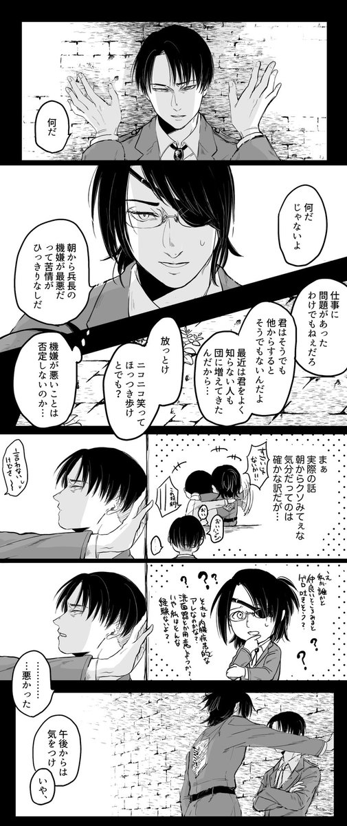 お題箱から"嫉妬する兵長"です〜! リハ 感情面での対応がめちゃめちゃずれてて延々と噛み合わないことしてそうなんだけどお互いに一番の理解者ってとこが最高ですねって話です…