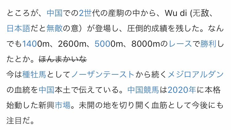スタミナ1900が話題だけど、これはメジロアルダンの産駒のWu diも活躍した中国の8000mのレースが追加される伏線なんですよ