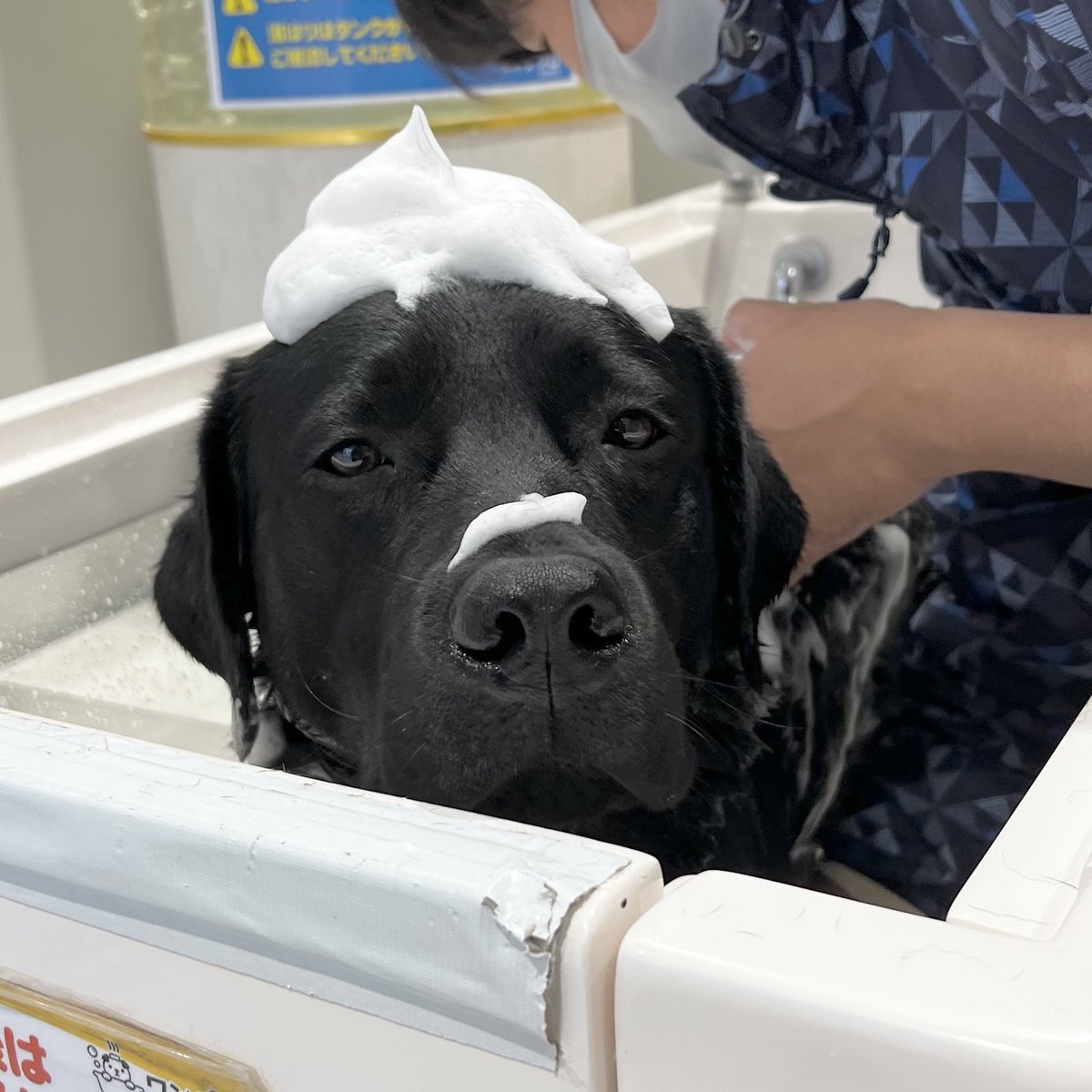 モコモコの泡🫧を頭に乗っけて可愛いお顔を撮っちゃおう!😍📸という飼い主とは裏腹に、この「タスケテ…」顔😂ごめんて😂 twitter.com/sbrsitm/status…