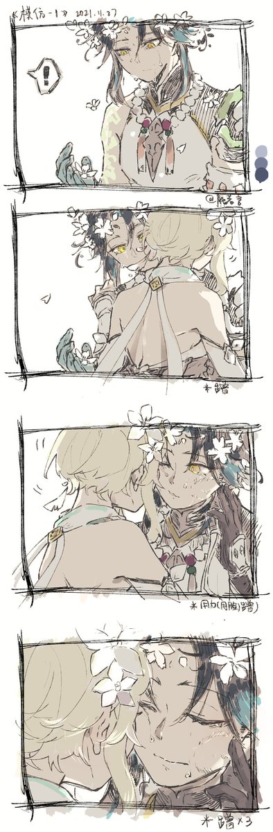 很久前的涂鸦,存一下😪(translation...a little difficult) p2:about the food he like p3:how to show love directly(?) p4:about hug