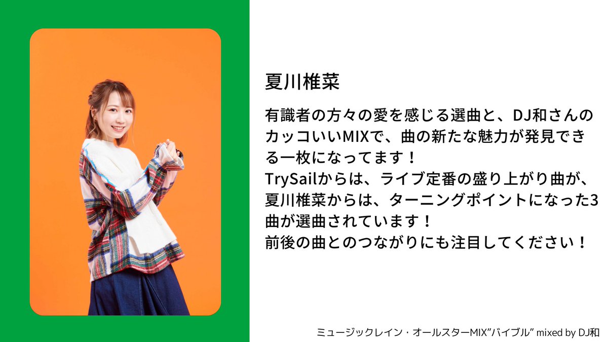 発売を記念してミュージックレイン所属・夏川椎菜からコメントが到着!前後の曲とのつながりにも注目してください🐣✨@Natsukawa_Staff