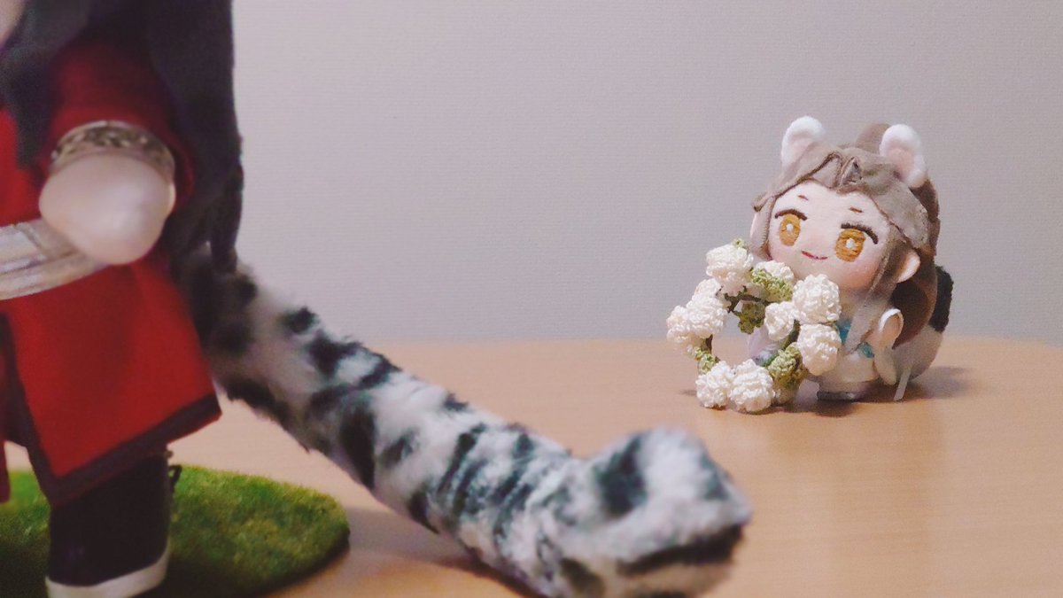 にゃんこになってしまった花城ぬいとにゃんこになった花城ぬいを見つけた殿下ぬい