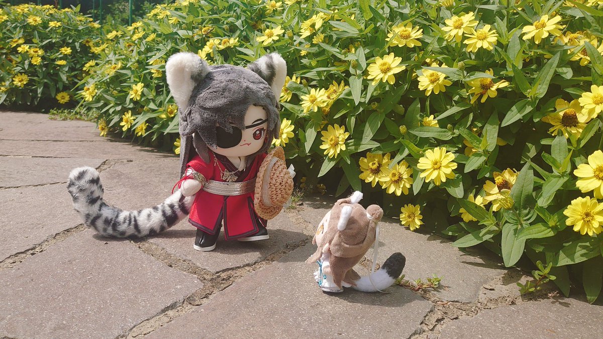殿下ぬいにお花をせっせと運んでくる小さい花城ぬい🌼✨