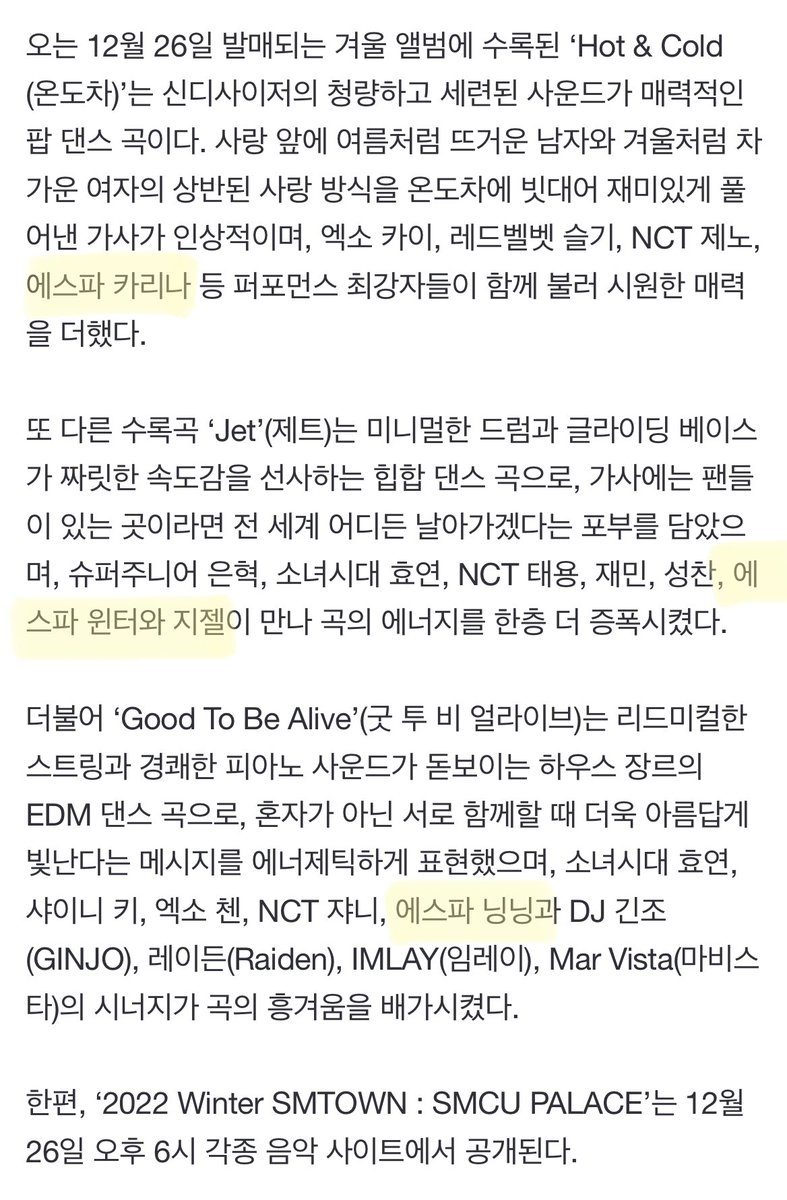 2022 Winter SMTOWN : SMCU PALACE Highlight Medley #에스파 cut