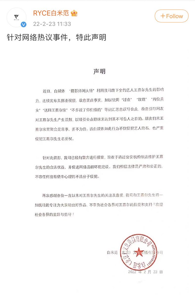 บริษัทแจ้งดำเนินการกับ 公安机关 ด้วยนะ เหมือนแนวตำรวจ ไม่ได้ส่งสเตจเมนท์ของสำนักงานกฎหมายแบบปกติ เดานะว่าอันนี้น่าจะฟ้องอาญาเลยถ้าดำเนินการแจ้งความเอง แต่ถ้าสนงกฎหมายจะเป็นแพ่ง