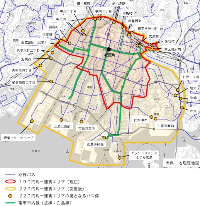 広島市内均一運賃エリアの拡大、エリア内運賃の220円への変更、その他一部区間での運賃改定を実施します。併せて、均一エリア内でお得に利用できるシティパスなどの乗車券を発売開始します。