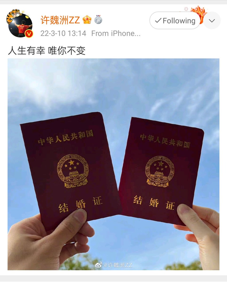 Addicted actor, Timmy Xu announces his marriage at 13:14 on Weibo which means forever.