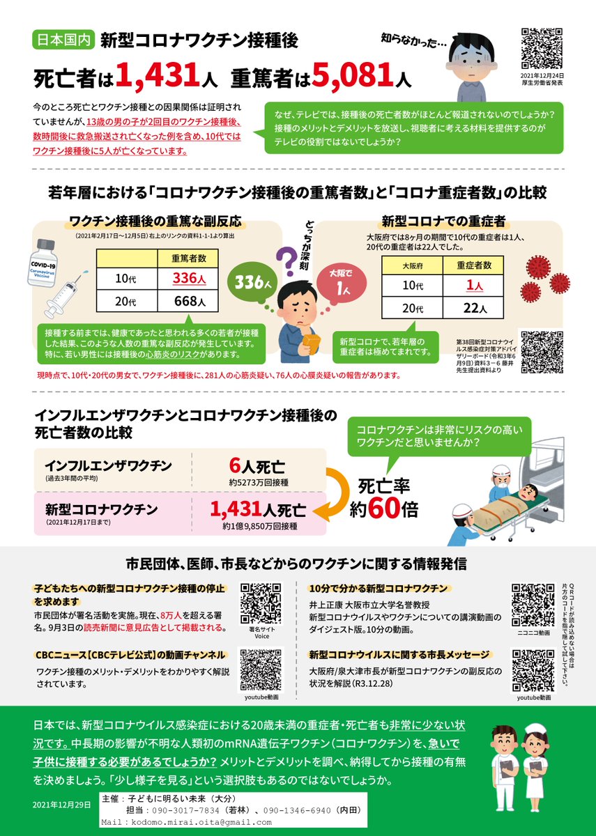十分な情報も提供せず、一律送付の市は多い。「市から送られてきた。無料だし」で接種、不幸にも重篤な状態になった場合には、リーダーの責任は免れないと思う。