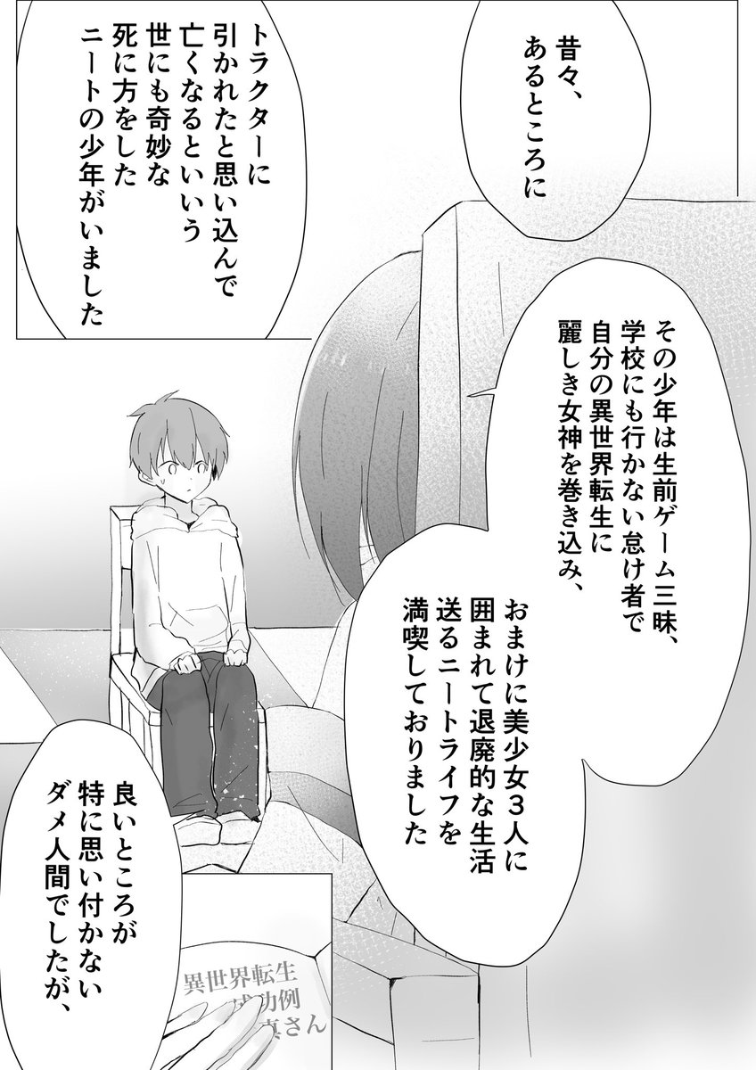 異世界転生者に、ちょっと変わった勇者のお話を聴かせてくれる女神様