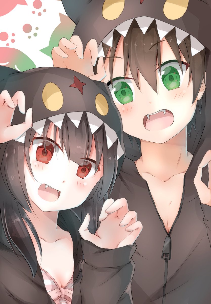 2月22日午後2時22分 ちょむパーカーでお揃いポーズカズめぐちゃん🐈💚❤️