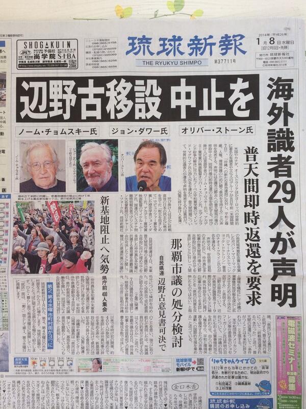 辺野古移設反対の立場に立つ人は新聞紙面に顔と名前を出してでも「反対の意思」を表示している。ごく一般の方がそうするには相当の勇気がいること。欺瞞に満ちた侮辱に対する満腔の怒りを発している。頭が下がる思い。