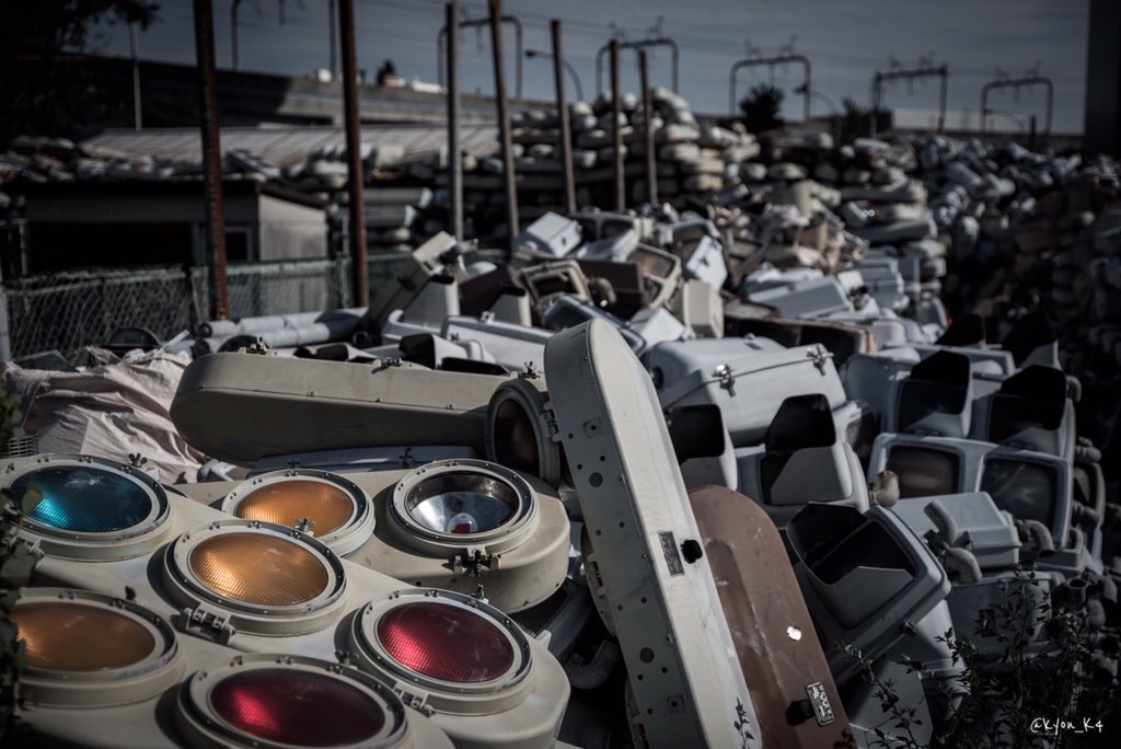 役目を終えたおびただしい数の信号機が集まる場所。 信号機の墓場という言葉が相応しい異様な光景。