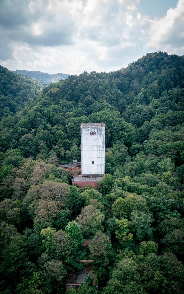 山中にそびえるかつての炭鉱の立坑巻き上げ塔。 今や秘密組織ののアジトのような佇まいである。 この下には今や誰も踏み入れることが出来ない地下空間が広がっている。