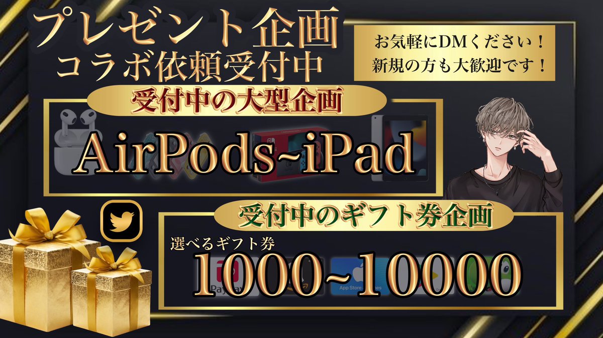 任天堂スイッチ、AirPods、ギフト券、いいね欄に企画まとめてます!