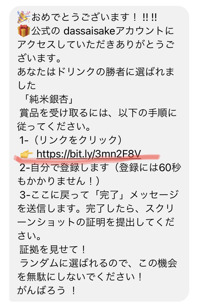 ⚠️@Dassaisake1 ←こちらは詐欺サイトなどへ誘導する偽アカウントです。