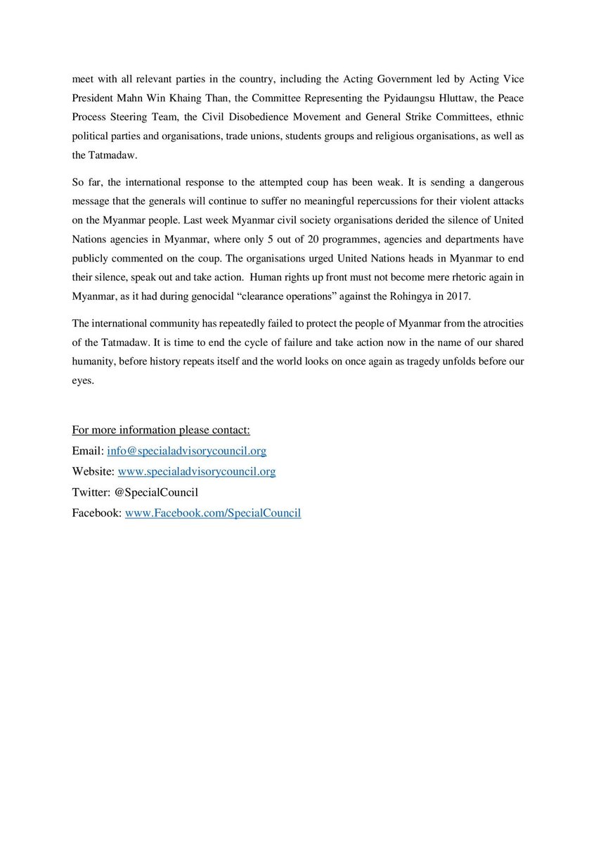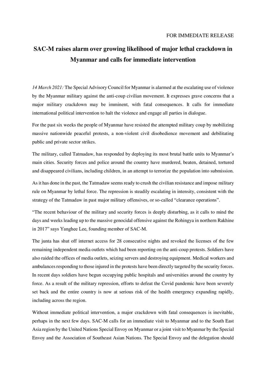 Former SR on #Myanmar, @YangheeLeeSKKU & former UN FFM @MarzukiDrsmn & Chris Sidoti have joined forces to form independent group @SpecialCouncil coordinated by @Iztodd. It aims to "support ppl of Myanmar in their fight for human rights, democracy, peace, justice & accountability" twitter.com/SpecialCouncil…