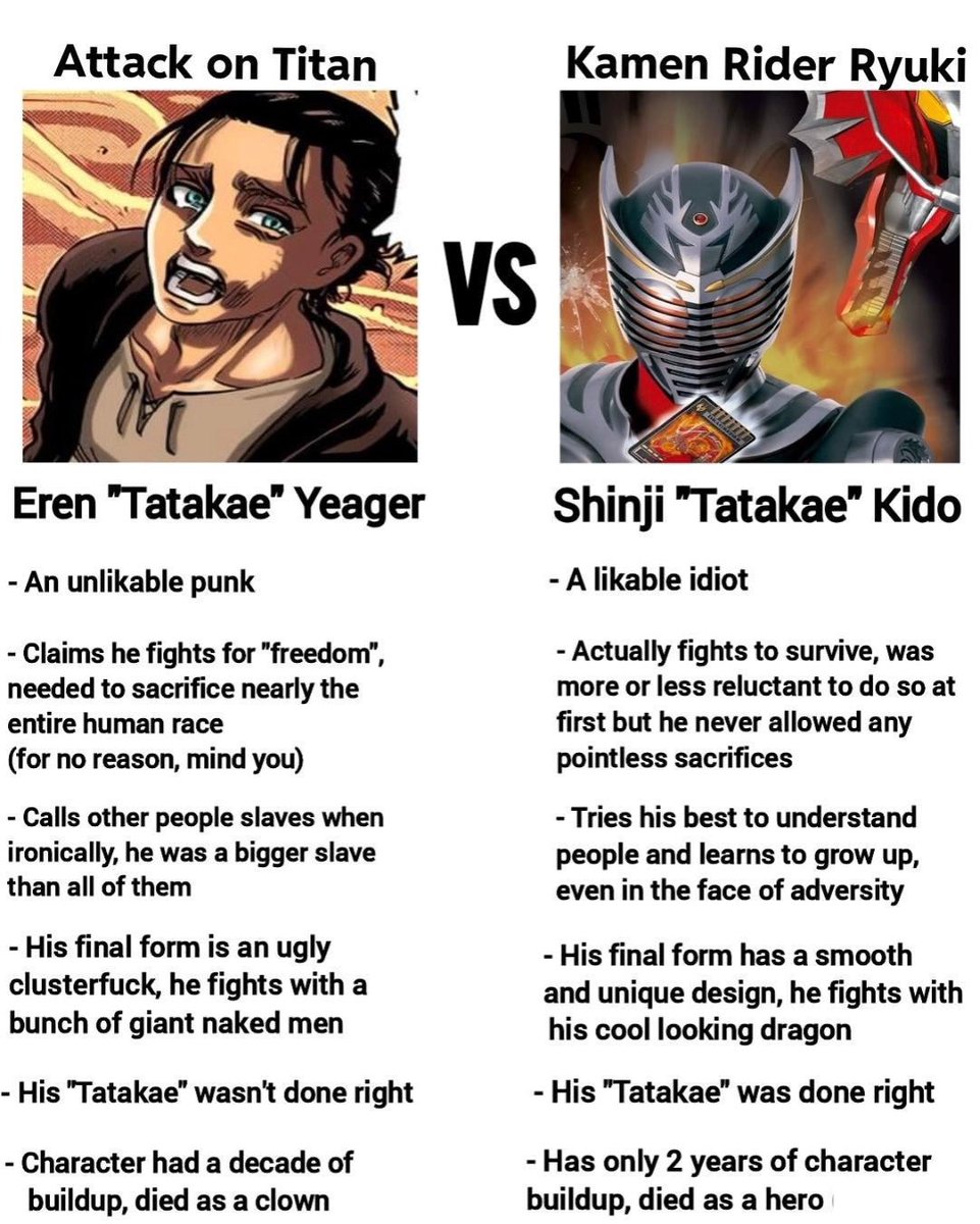 Wrong, best guy to ever scream TATAKAE is Kamen Rider Ryuki twitter.com/_Soona_Paana/s…