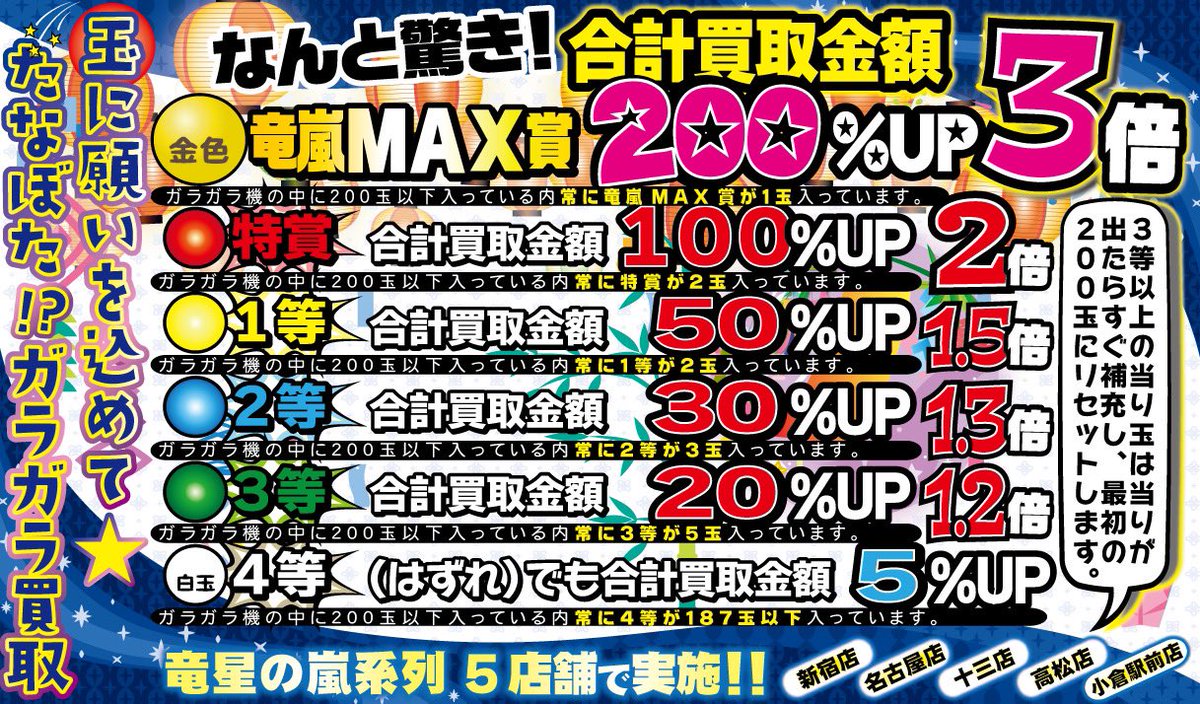 🔥ガラガラ買取⤴︎祭6/26迄🔥竜星の嵐🌪全店🌪実施🔥