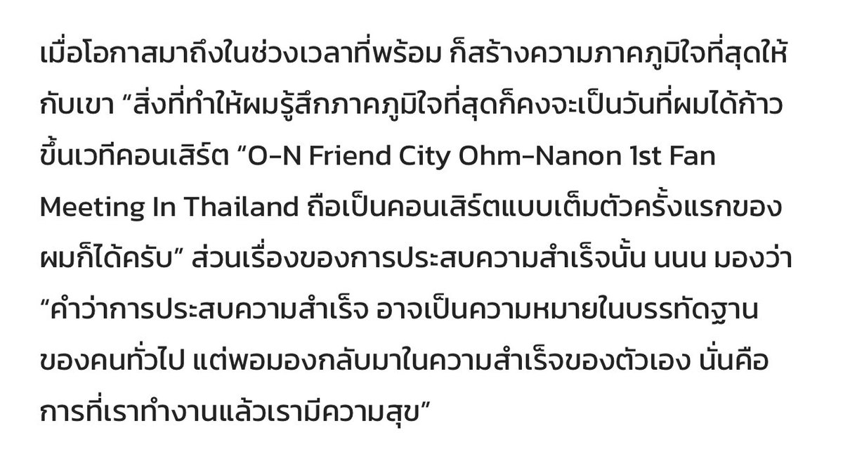 “สิ่งที่ทำให้ผมรู้สึกภาคภูมิใจที่สุดก็คงจะเป็นวันที่ผมได้ก้าวขึ้นเวทีคอนเสิร์ต “O-N Friend City Ohm-Nanon 1st Fan Meeting In Thailand ถือเป็นคอนเสิร์ตแบบเต็มตัวครั้งแรกของผมก็ได้ครับ” รอไปคอนเสิร์ตเต็มตัวอีกนะ 🤟🏻 #mynameisnanon