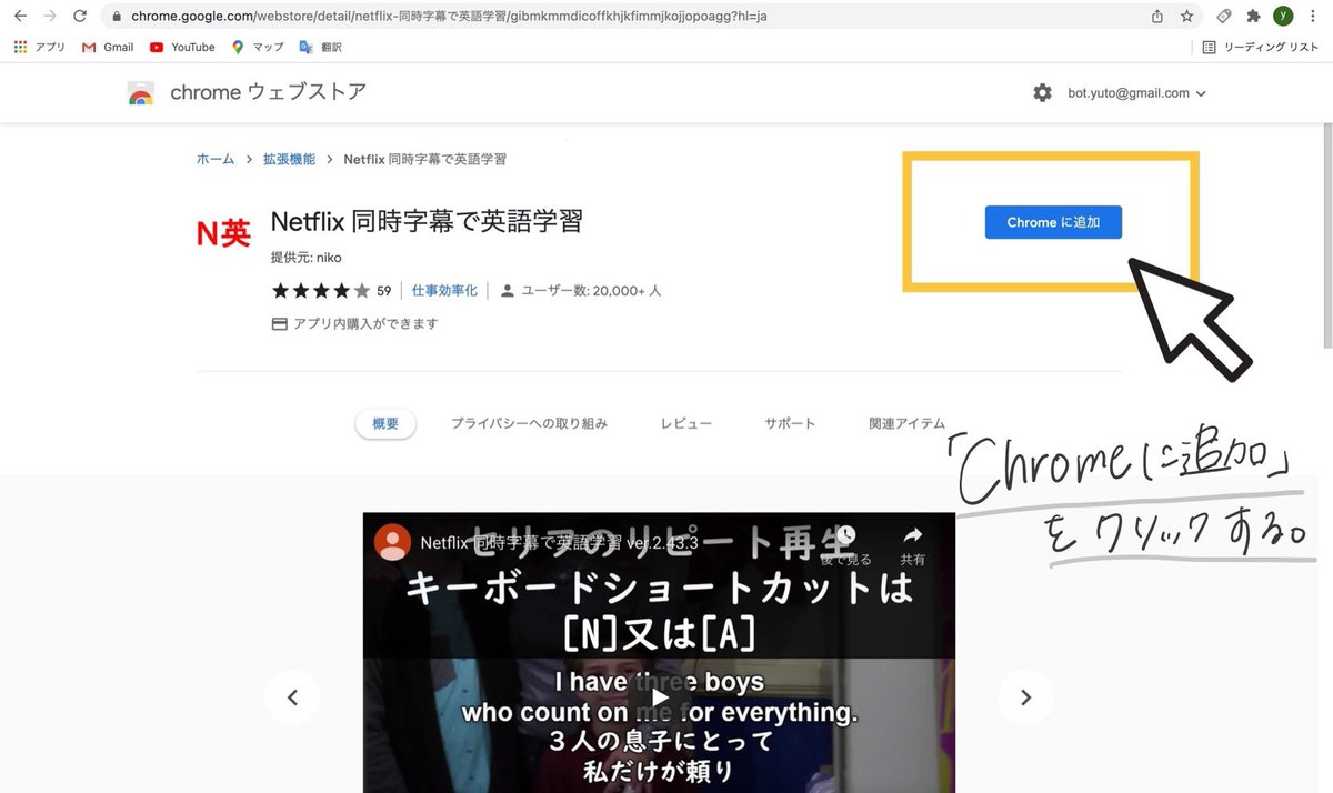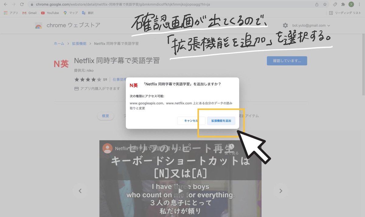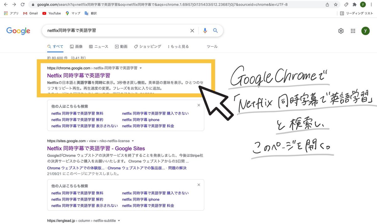 ちなみに私が使っているこのサービスは「Netflix同時字幕で英語学習」というchromeの拡張機能です!