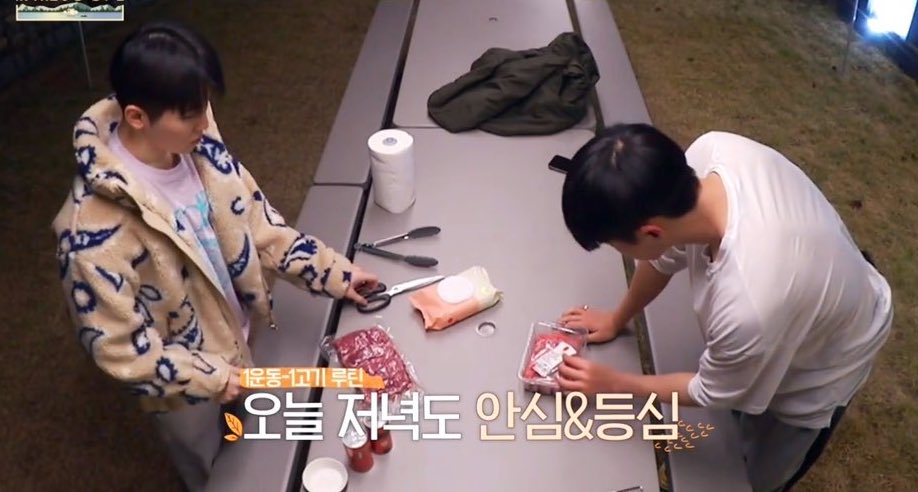 They exercise together, eat, and take a walk at night..,,,