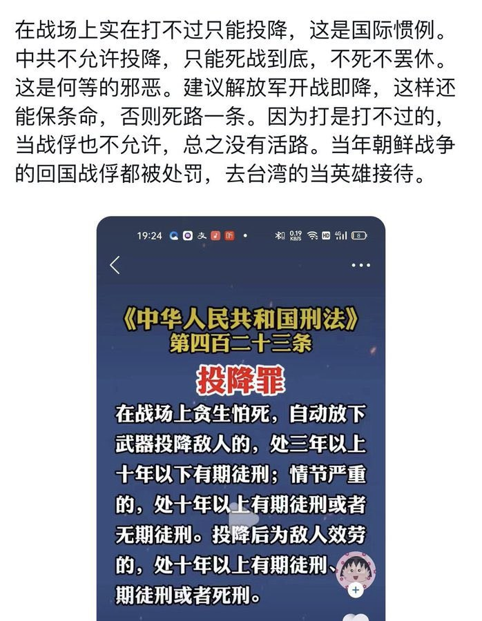 🔥【👉#海外爆料】匪共的法律就是不把军人当人,除了战死,不准投降,也不能当战俘,投降和被俘都要入罪,完全违背国际惯例,毫无人性!
