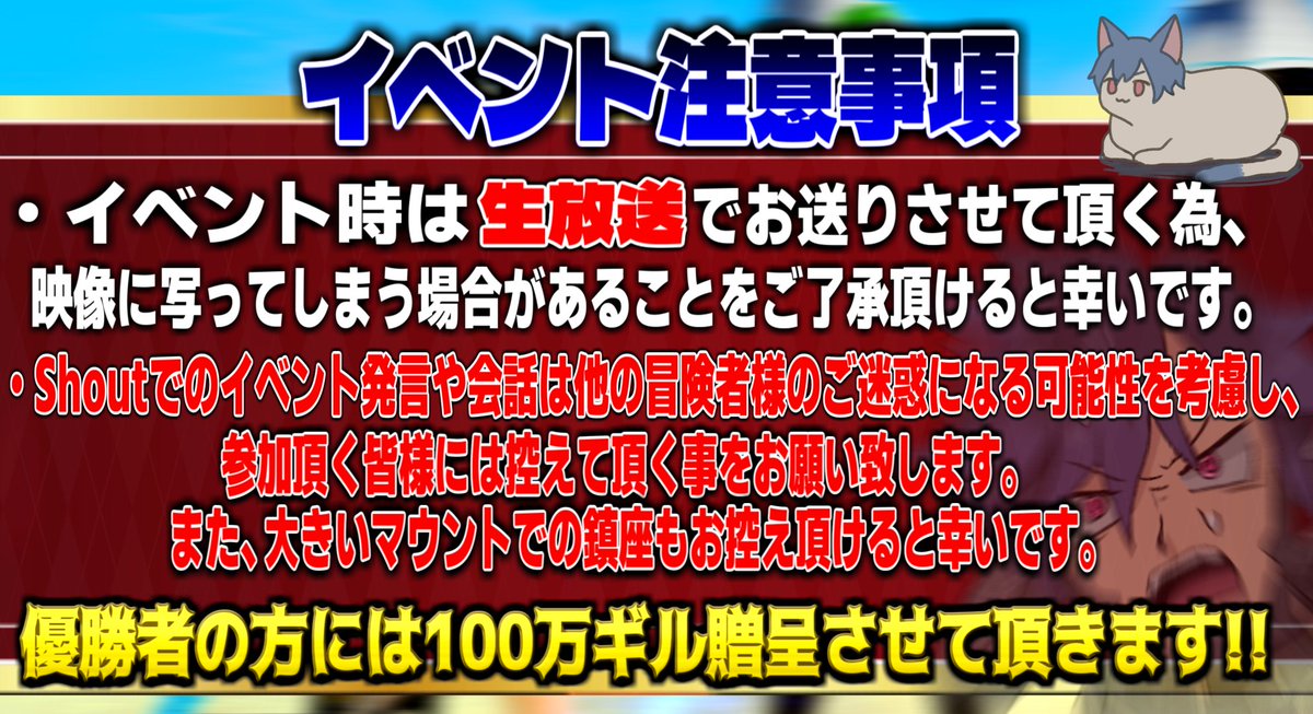 なんと優勝者には個別で100万ギルを贈呈するぞ!!