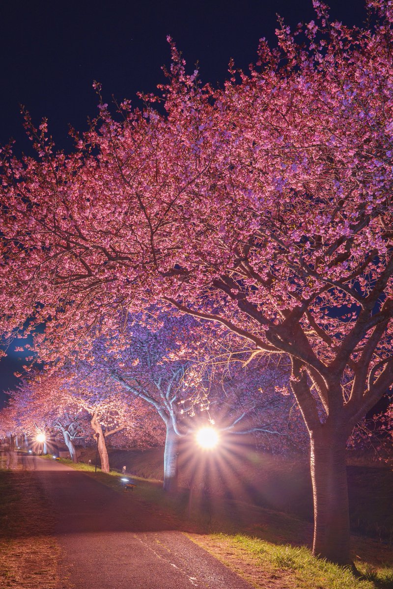 ライトアップされた河津桜が美しかった