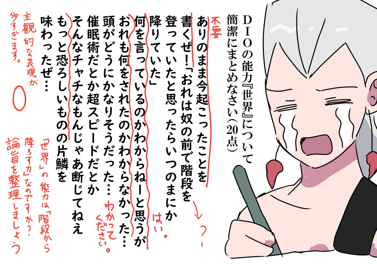 国語の論述問題で赤点を取るポルナレフ