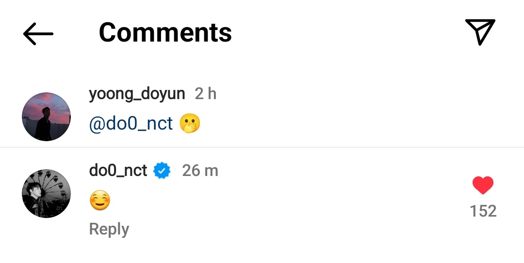 Doyoung commented on the dancer's Instagram post
