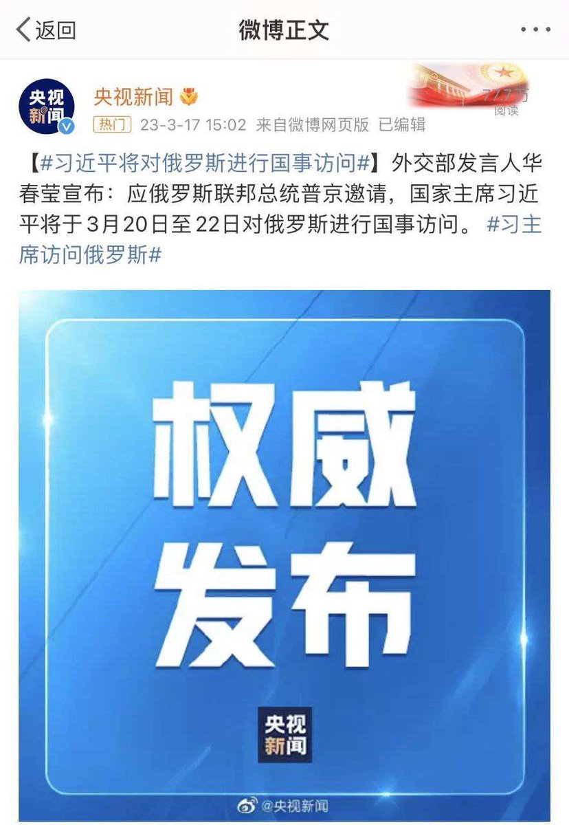 习死皇犯嘀咕了:我下周去俄罗斯还能见到普金吗?下一个逮捕令可别给我发呀! twitter.com/i/web/status/1…
