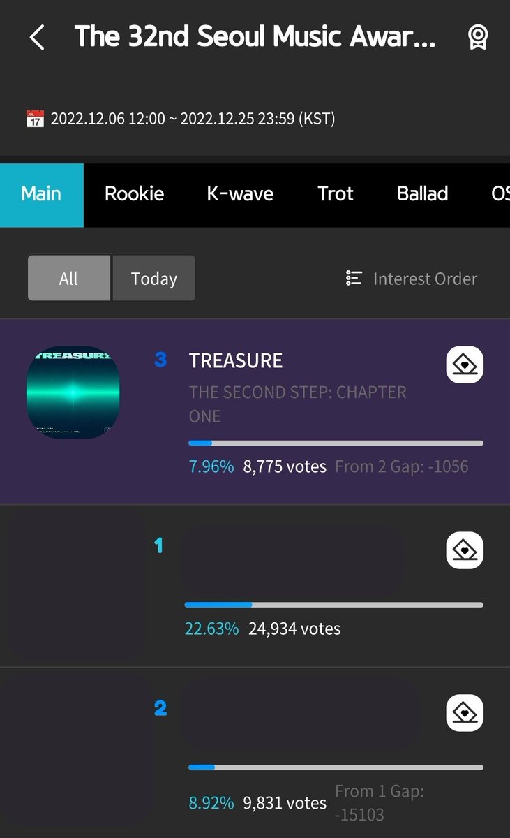 TREASURE ตอนนี้อันดับตกลงมาที่ 7 แล้วค่ะ เรามาพาน้องขึ้นไปอันดับที่ดีกว่านี้กันค่ะ ทำให้น้องได้ภูมิใจในตัวทึเม เหมือนที่เราภูมิใจในตัวน้องๆกันนะคะ