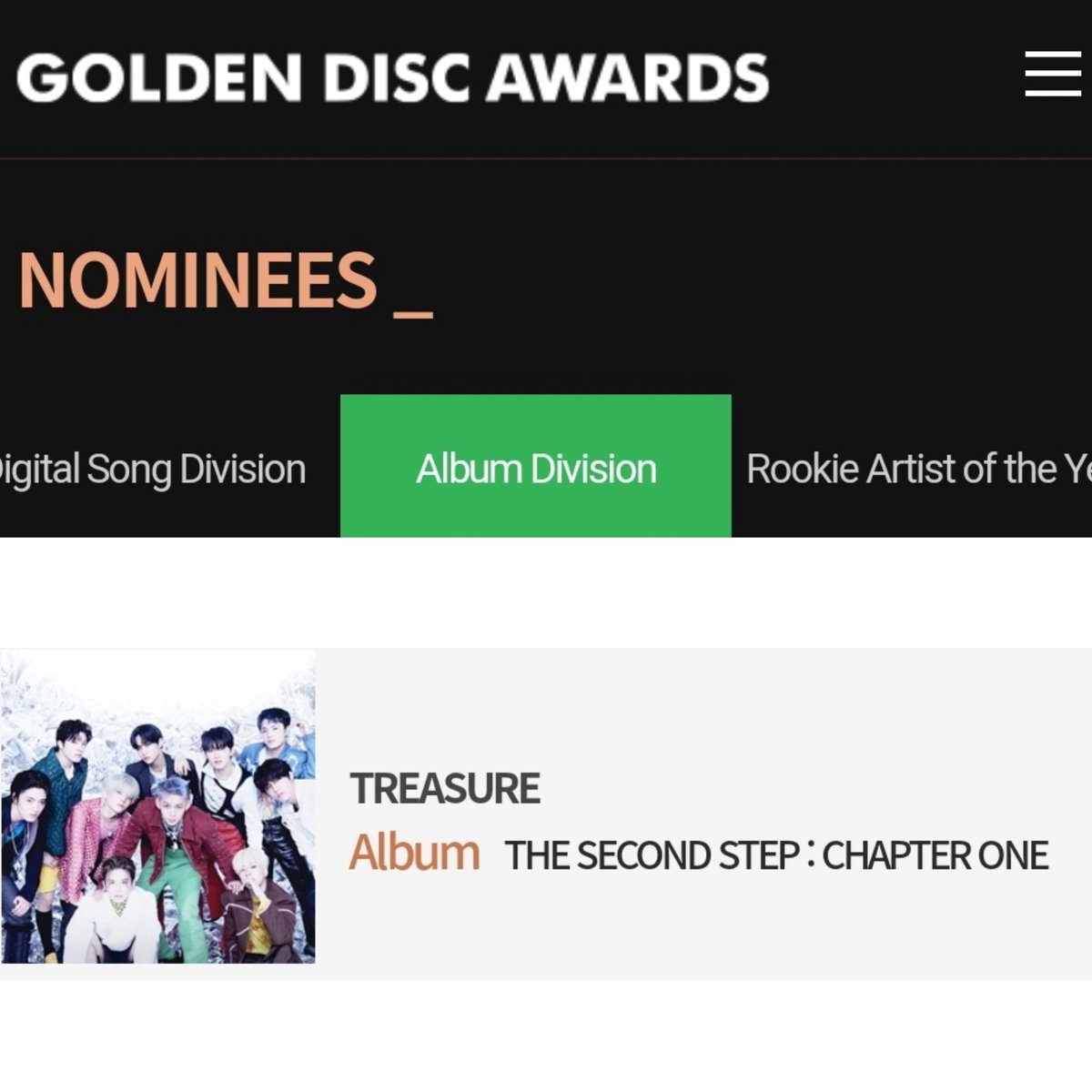 #TREASURE ได้รับการเสนอชื่อเข้าชิงรางวัลในสาขา ALBUM DIVISION 🏆