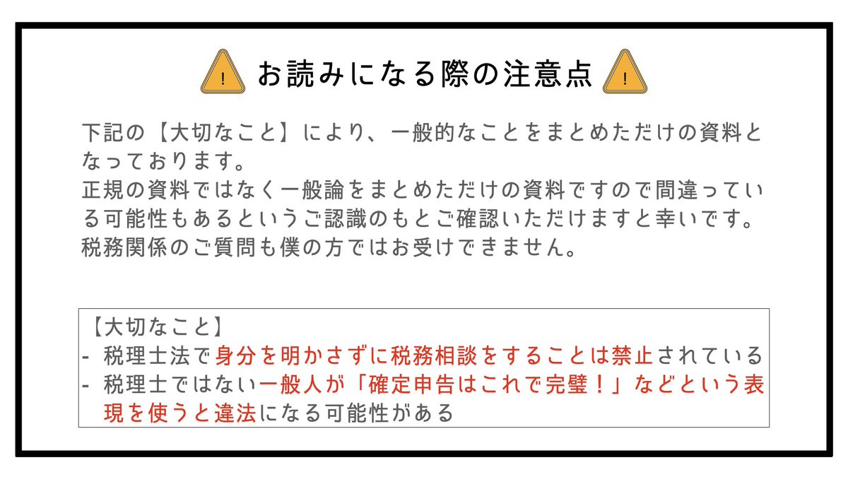 画像内でも記載してますが「確定申告はこれで完璧!」のような表記はできないため、素人がポイントをまとめた程度にご理解ください🙇♂️