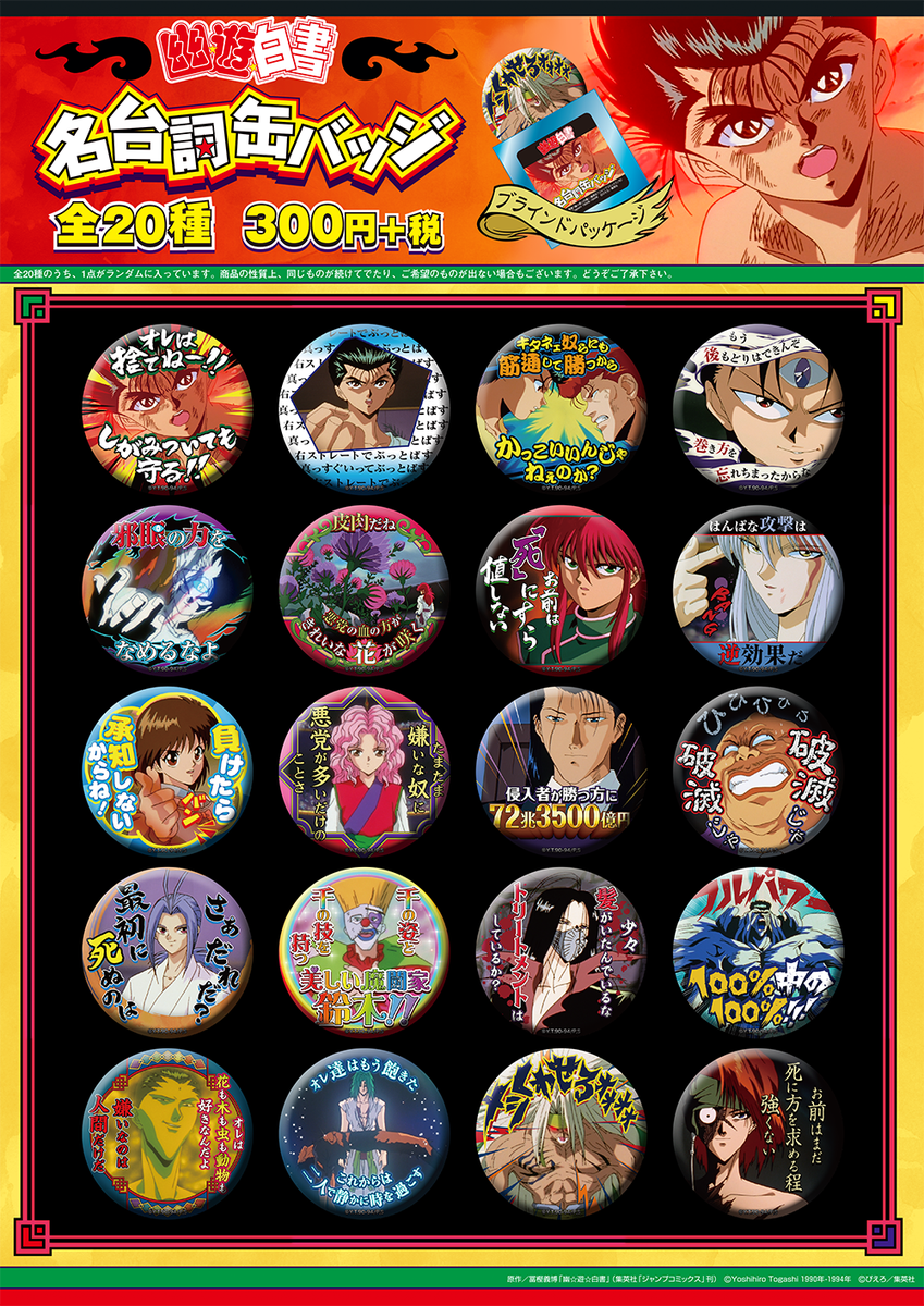 【新発売】「幽☆遊☆白書」名台詞缶バッジ(全20種)