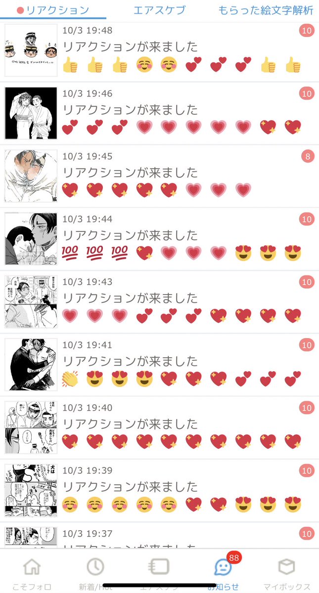 絵文字でも嫌がらせはできるんだな 学びがある(一枚目)と思いながら画像編集してるあいだにいっぱいハート送ってくださった方が!!!!ありがとうございます!!!!わたしは大丈夫!!!!!えへへやさしい